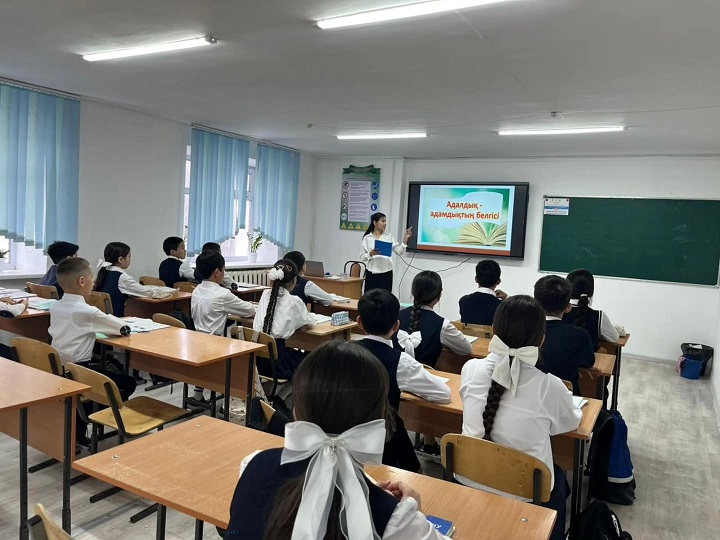 Сабақ барысында оқушылар өз ойларымен бөлісіп, түрлі тапсырмалар орындап, адамгершіліктің мәнін терең түсінуге мүмкіндік алды.