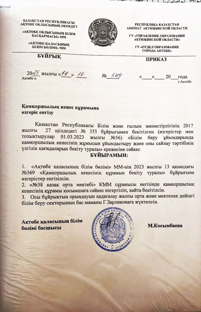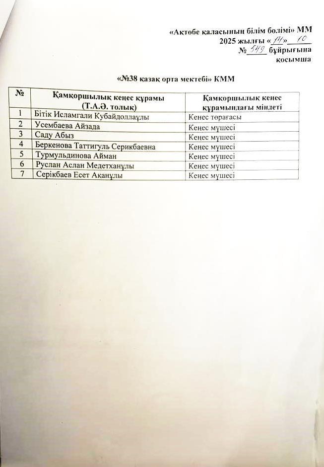 Қамқоршылық кеңесінің отырысының Хабарлама 38