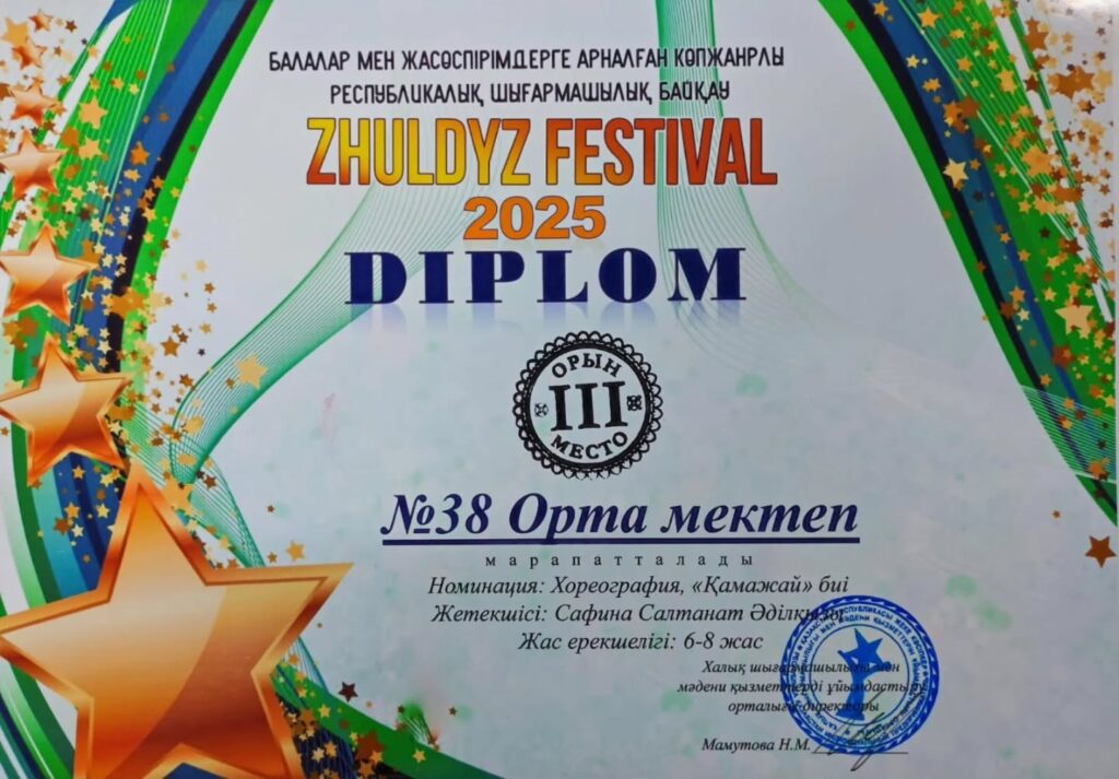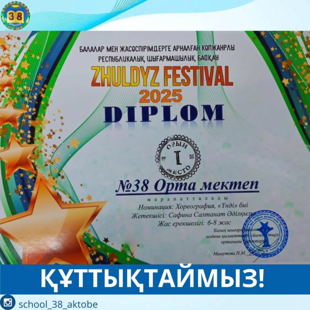 “ZHULDYZ FESTIVAL” атты балалар мен жасөспірімдерге арналған көпжанрлы республикалық шығармашылық байқауында №38 қазақ орта мектебінің оқушылары жүлделі орындарға ие болды.
